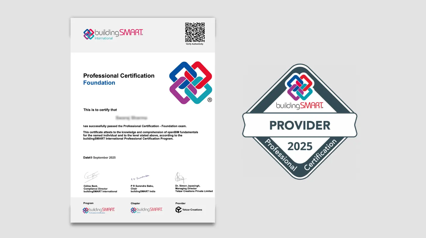 Yatzar Academy is an approved buildingSMART Training Provider offering the Foundation Level Certificationunder this global framework. This level is designed for professionals and students who want to establish a strong foundation in openBIM concepts and processes.